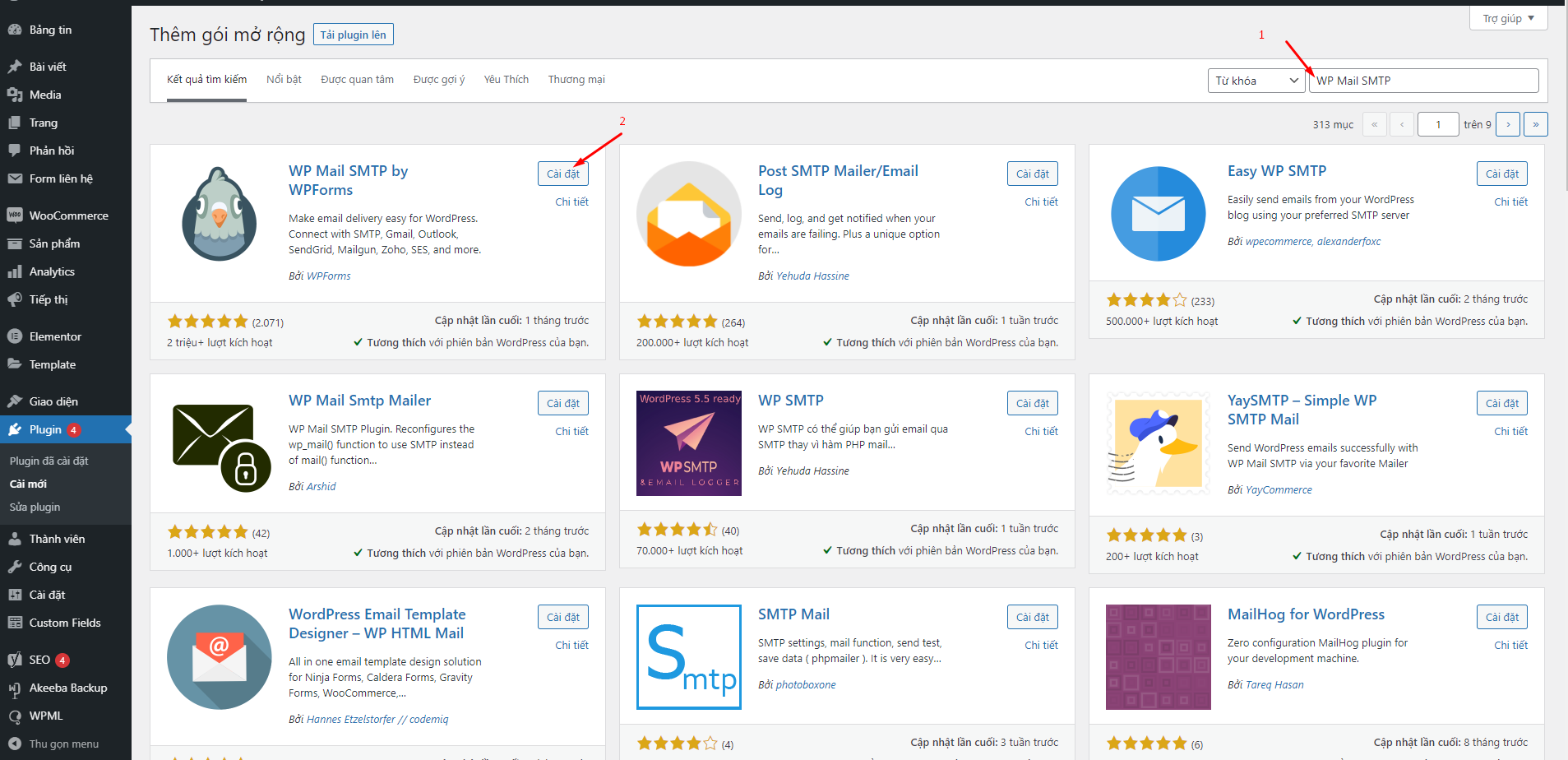 Tìm kiếm plugin WP Mail SMTP -> Cài Đặt -> Kích hoạt