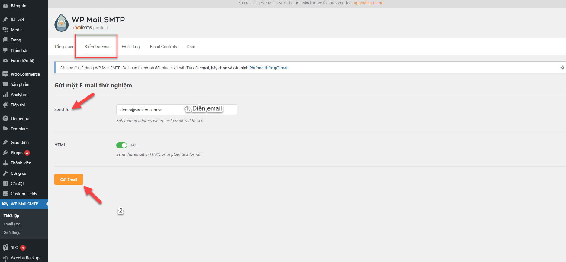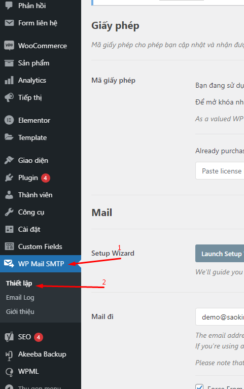 Vào WP Mail SMTP! -> Thiết lập
