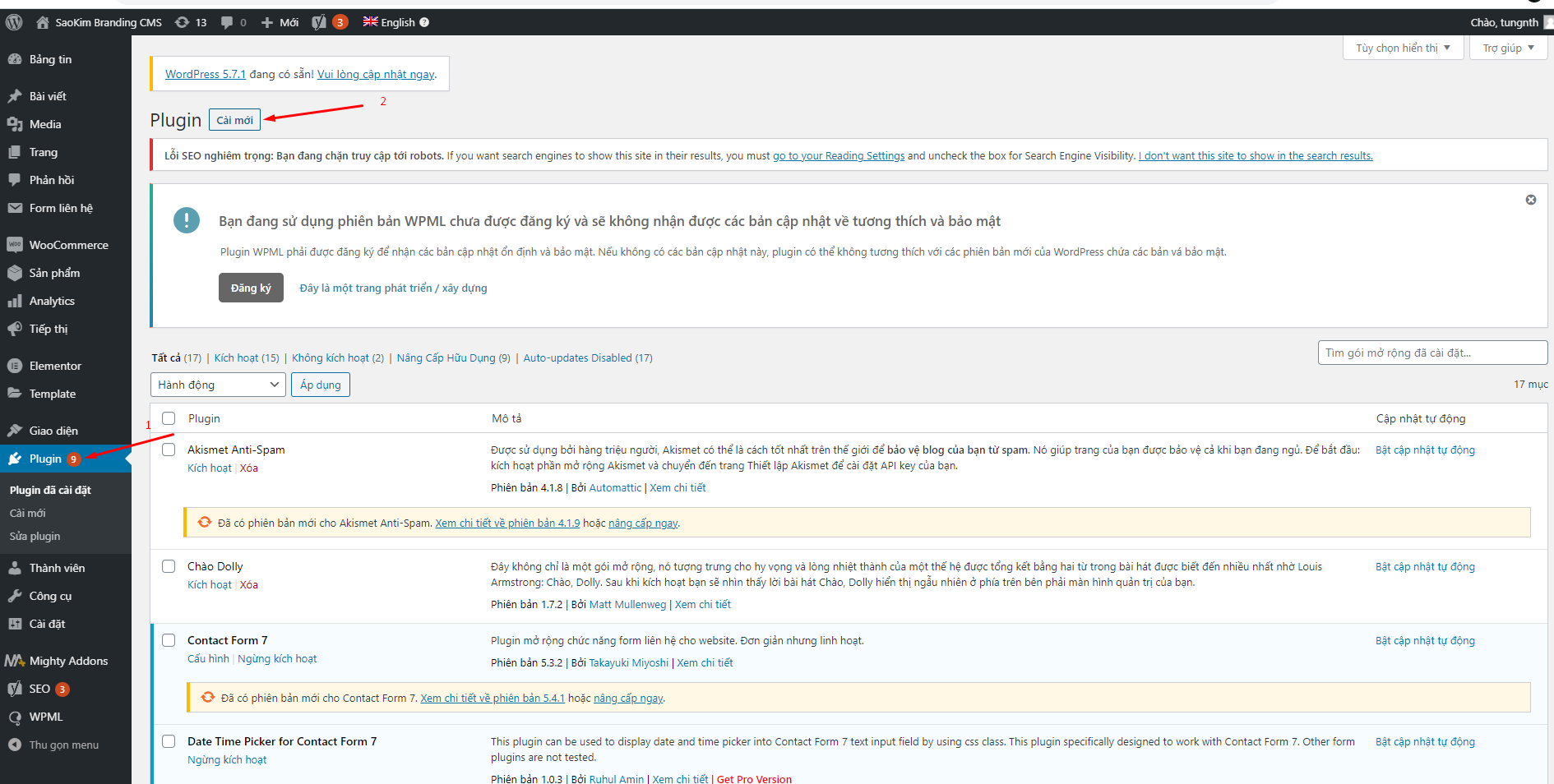 Vào Plugin -> Cài mới