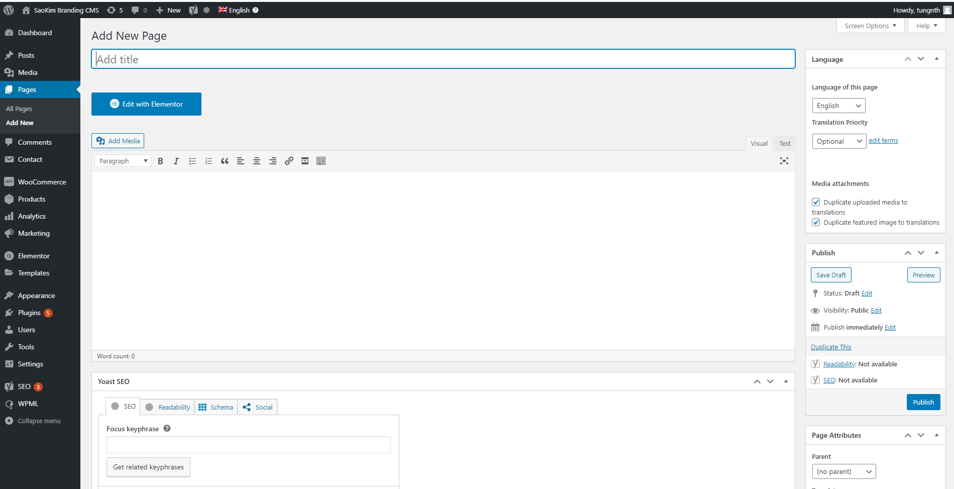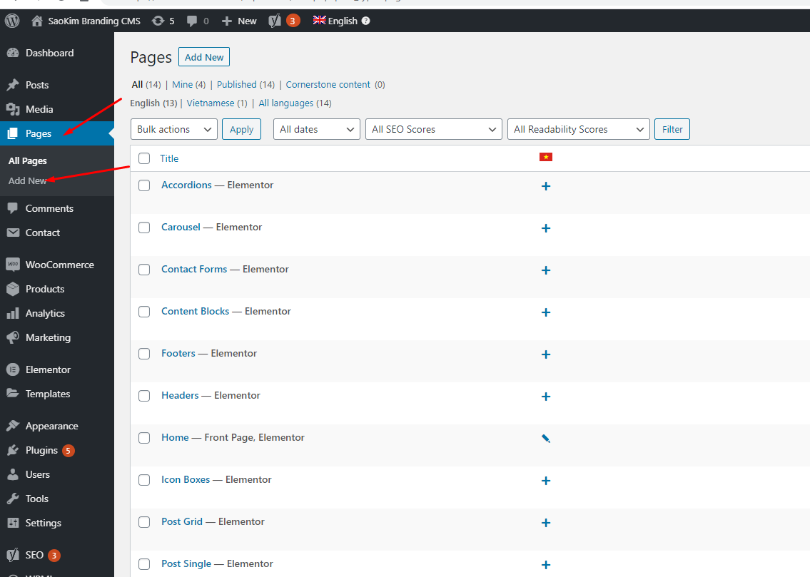 Nhấn Edit Elementor để có thể sửa web trên giao diện Elementor