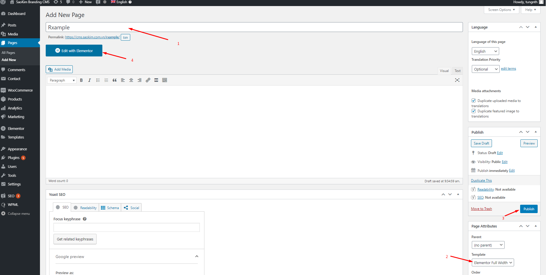Điền tên Title -> Publish để đăng trang lên